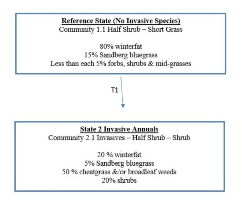 This low producing site has two distinct layers – a scattering of short, half-shrubs in the top layer, and a sparse herbaceous layer of short, small bunchgrasses underneath. The plant community is predominately winterfat and Sandberg bluegrass. The native plant community on the Calcareous Loam ecological site is more stable and intact than the plant community on the Dry Loamy ecological site.