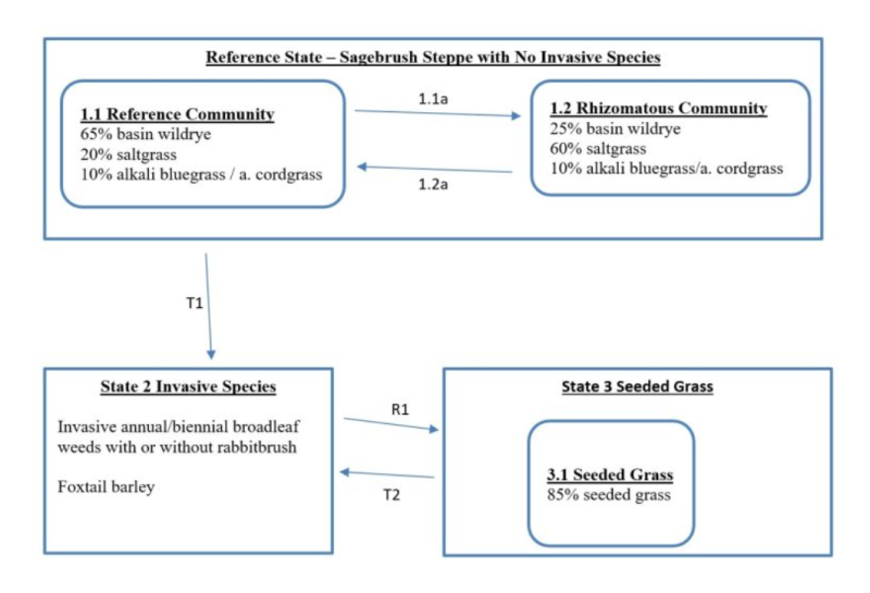 Moderately saline-sodic soil conditions and deep soils drive the vegetative expression of the Alkali Terrace ecological site. Basin wildrye and saltgrass are both at home on this site. During the winter and spring there is a water table at 30 to 40 inches.