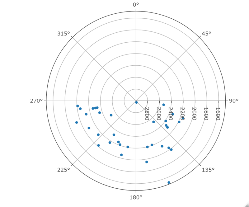 Figure 1. Plot showing aspect (degrees) and elevation (meters) of each Steep Skeletal 15-19" range site surveyed in the Lost River Mountain LRU