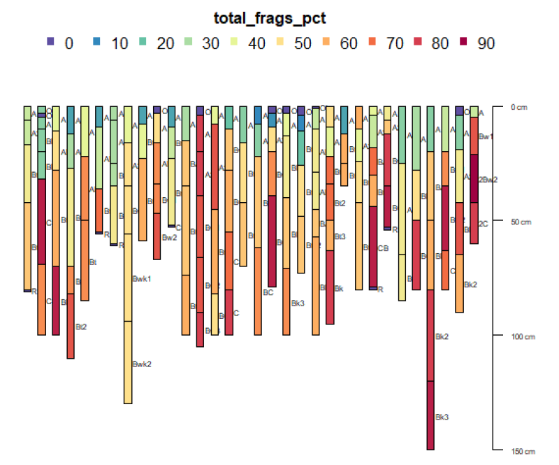 The Steep Skeletal 15 to19 inch precipitation zone. (StSk 15 to 19 inch ) is an upland ecological site with a high volume (greater than 35 percent average) of coarse fragments in the top 20 inches (50 centimeters) of the soil profile. The size of coarse fragments in the soil profile are gravel or larger, and often consists of a combination of different fragment sizes. This site is also found on slopes greater than 30 percent. The site is moderately deep to very deep to lithic restrictions and does not receive additional moisture outside of annual precipitation.