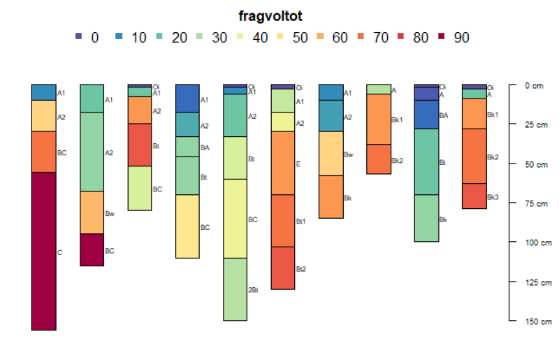 o Are often skeletal (greater than 35 percent coarse fragments in the top 50cm), with rounded rock fragments from glacial processes