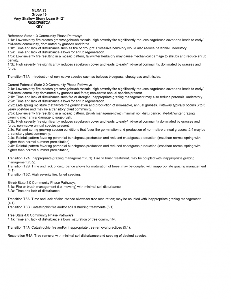 Currently there is only a draft of the initial concept for this ecological site. The initial concept for this site places it within the Shallow Rocky 8-14 PZ Black Sagebrush Ecological Site Group. To view the General STM and other information available for this ESG please go to https://edit.jornada.nmsu.edu/catalogs/esg/023X/R023XY913NV