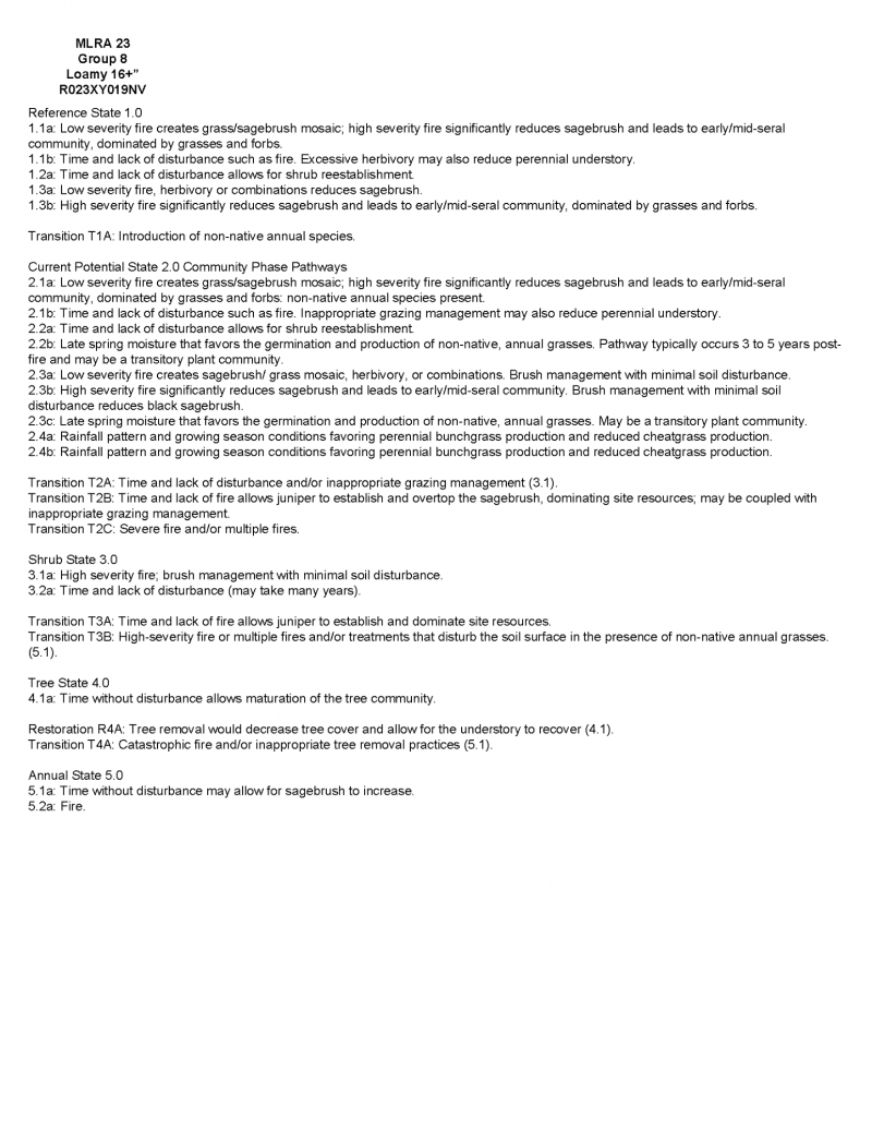 Currently there is only a draft of the initial concept for this ecological site. The initial concept for this site places it within the Loamy 14-18 PZ Mountain Big Sagebrush and Mountain Brome Ecological Site Group. To view the General STM and other information available for this ESG please go to https://edit.jornada.nmsu.edu/catalogs/esg/023X/R023XY908NV