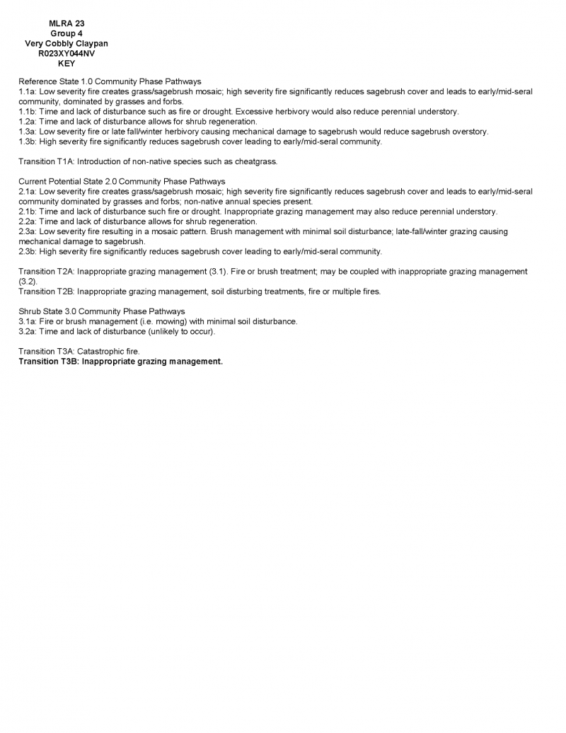 Currently there is only a draft of the initial concept for this ecological site. The initial concept for this site places it within the Cobbly Mod Deep Clay 10-14 PZ Low or Lahontan Sagebrush and Sandberg bluegrass Ecological Site Group. To view the General STM and other information available for this ESG please go to https://edit.jornada.nmsu.edu/catalogs/esg/023X/R023XY904NV