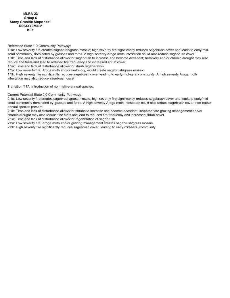 Currently there is only a draft of the initial concept for this ecological site. The initial concept for this site places it within the Ashy or Loamy Skeletal Mod Deep 10-20 PZ High-Resilience Mountain Big Sagebrush and Idaho Fescue Ecological Site Group. To view the General STM and other information available for this ESG please go to https://edit.jornada.nmsu.edu/catalogs/esg/023X/R023XY906NV