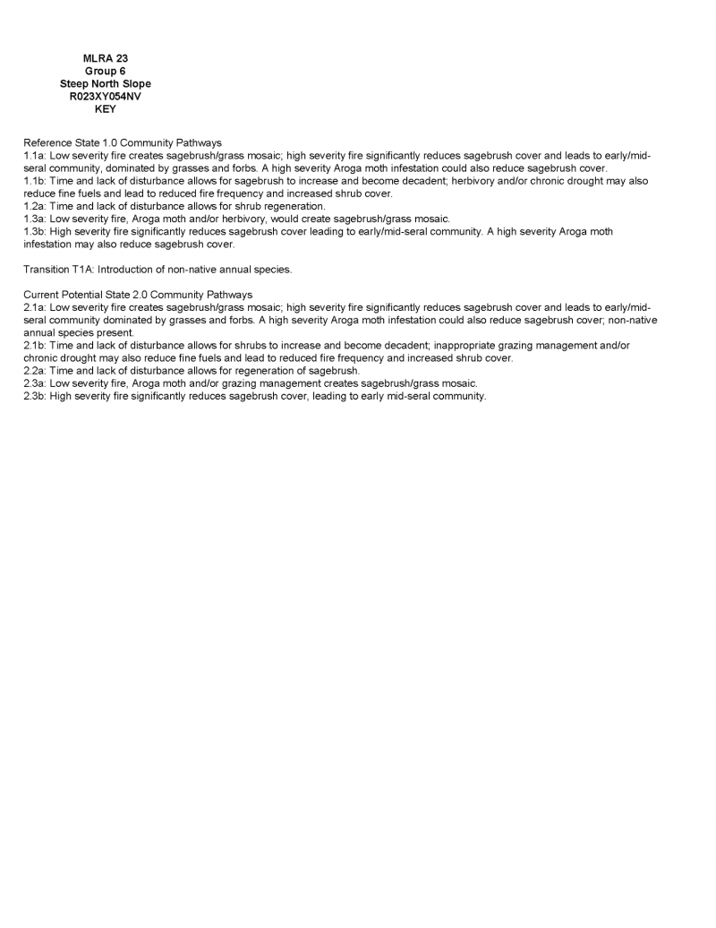 Currently there is only a draft of the initial concept for this ecological site. The initial concept for this site places it within the Ashy or Loamy Skeletal Mod Deep 10-20 PZ High-Resilience Mountain Big Sagebrush and Idaho Fescue Ecological Site Group. To view the General STM and other information available for this ESG please go to https://edit.jornada.nmsu.edu/catalogs/esg/023X/R023XY906NV