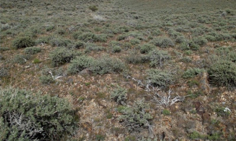 Wyoming big sagebrush remains in the overstory with annual non-native species, likely cheatgrass, dominating the understory. Trace amounts of desirable bunchgrasses may be present.