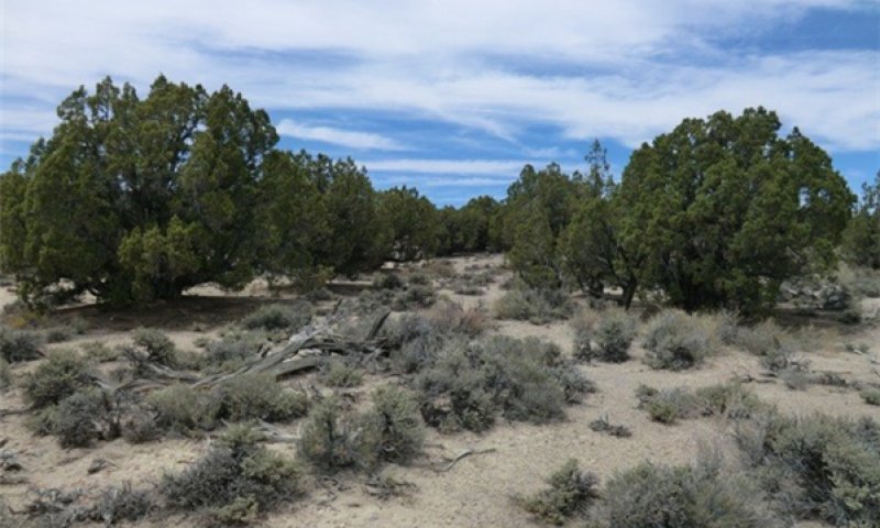 The reference state is dominated by very old Utah juniper. Black sagebrush is the principal understory shrub. Indian ricegrass, needle and thread, and Sandberg bluegrass are the most prevalent understory grasses. An overstory canopy of 15 to 25 percent is assumed to be representative. Understory production ranges from 125 to 300 pounds per acre. Occurrences of this site on fan remnants should be considered a treed state of black sagebrush rangeland, not a forest ecological site.