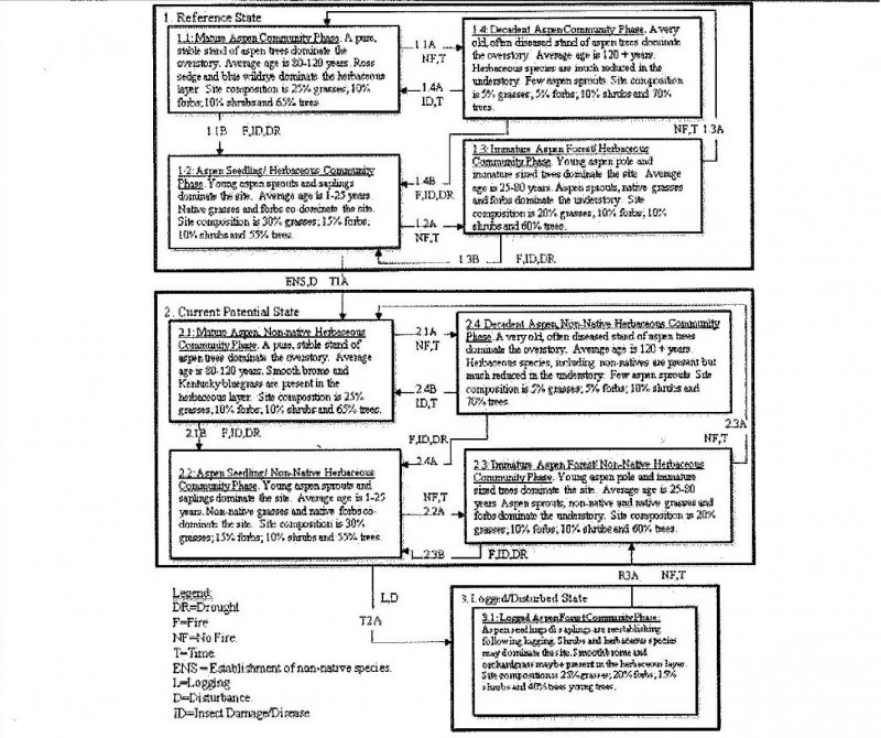 Current Potential State: Plant communities influenced by Aspen canopy density, long term weather fluctuations, and periodic fire.