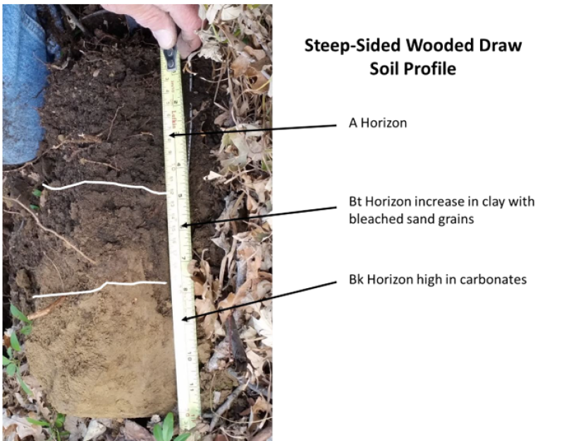 Soils, on the Steep-Sided Wooded Draw ecological site, are typically not susceptible to erosion under reference conditions.