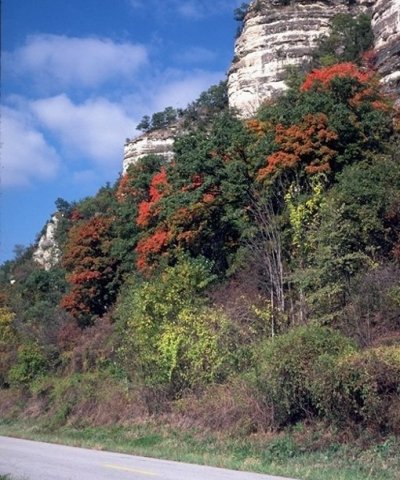Limestone/Dolomite Exposed Cliffs occupy southerly and westerly aspects, and are mapped in complex with the Limestone/Dolomite Protected Cliff ecological site. These sites are north of the Missouri River, often on cliffs adjacent to floodplains. They are typically associated with Limestone/Dolomite Glade/Woodland ecological sites. Soils are very shallow to limestone or dolomite. The reference plant community consists of scattered small trees, shrubs, grasses, forbs, and ferns, occupying cracks and ledges in the cliff face.