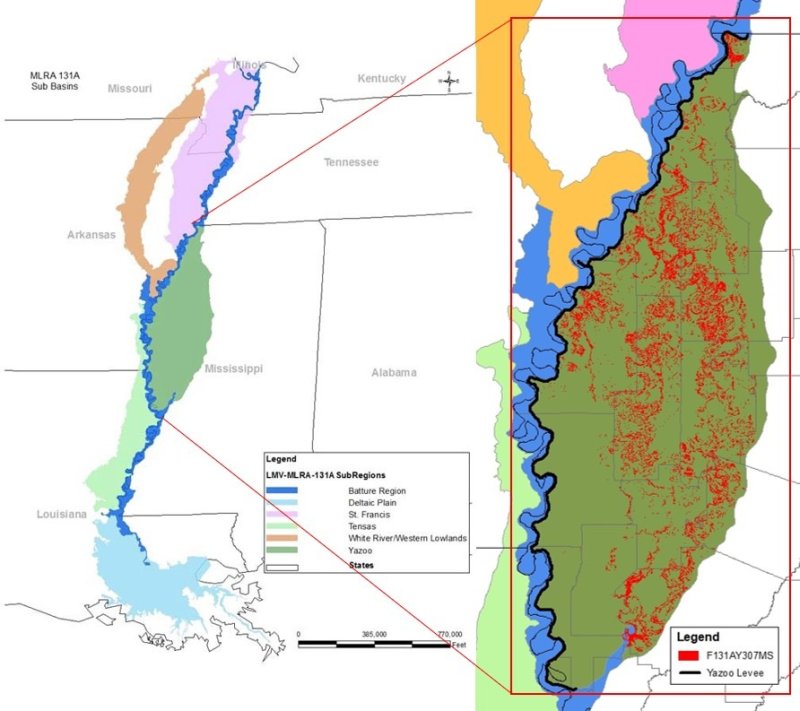 Figure 13. Undulating natural levee over older meander scroll Dundee sil, 0-3% slopes, Coahoma Co., MS.