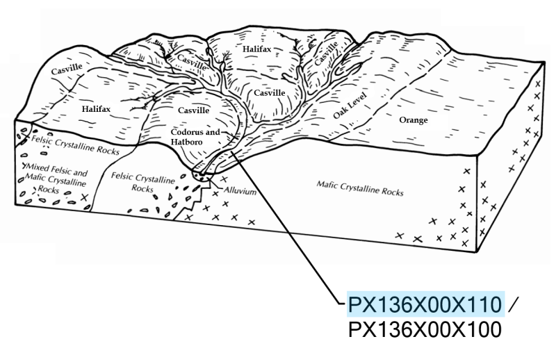 The Carolina Slate Belt runs lengthwise through the east-central part of the MLRA, in southern Virginia, North Carolina, South Carolina, and the eastern-most part of the Georgia Piedmont. This region is underlain by fine-grained metasedimentary and metavolcanic rock, which generally weathers to produce soils high in silt.
