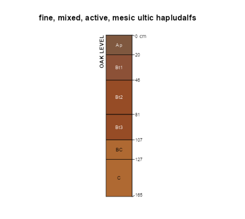 Canopy layer: Quercus alba, Quercus rubra, Carya ovata, Carya glabra, Carya tomentosa, Carya ovalis, Ulmus americana, Juglans nigra, Liriodendron tulipifera, Pinus echinata, Pinus virginiana, Quercus falcata,