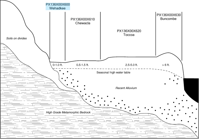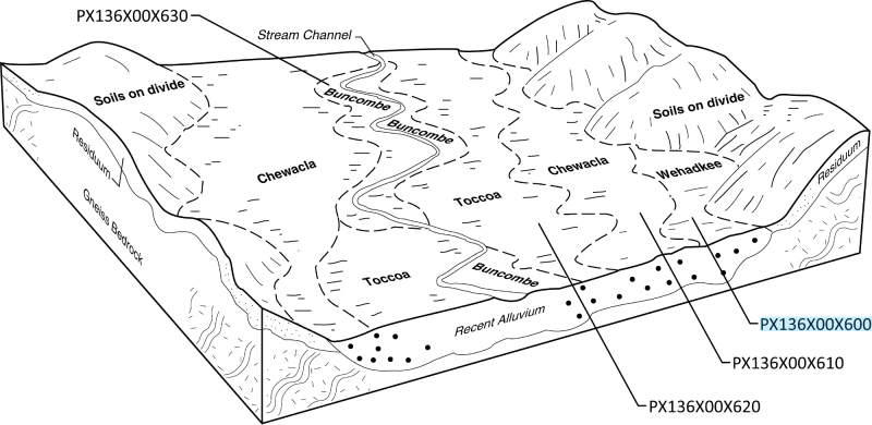 The dominant soil orders of the MLRA are Ultisols, Inceptisols, and Alfisols. Ultisols and Alfisols are typically found on more stable landforms, such as interfluves, gentle hillslopes, broad ridgetops, and stream terraces, while Inceptisols are typically found on less stable landforms, including flood plains, steep hillslopes, and narrow ridgetops.