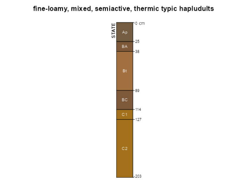 Soils on this ecological site are typically very deep, well to moderately well drained Ultisols or Alfisols. They are generally better developed than those of adjacent flood plains, as the flooding frequency is not great enough to interfere with soil formation to any major extent. Being situated on more stable surfaces, soils on this ecological site usually have an argillic horizon in subsurface layers. Parent materials are typically loamy to clayey old alluvial sediments.