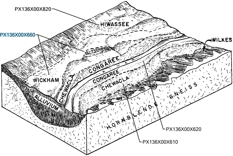 Based on the USGS physiographic classification system (Fenneman and Johnson 1946), most of MLRA 136 is in the Piedmont Upland section of the Piedmont province, in the Appalachian Highlands division.