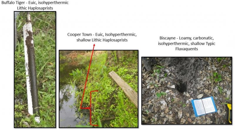 The species composition is mainly influenced by flooding patterns. In saturated and frequently flooded environments, more hydrophytic trees become more abundant. Frequency and depth of inundation have a pronounced effect on oak canopy composition as well, with saturated soils supporting more swamp laurel oak, and areas of infrequent flooding supporting more live oak. Flooding conditions contribute to hydric conditions and sapric organic material retention. Soils are variable, usually somewhat acidic to slightly alkaline with sapric organic matter, and mineral soils materials overlie a layer of Oligocene limestone near the surface and in some case deeper than 204 cm.