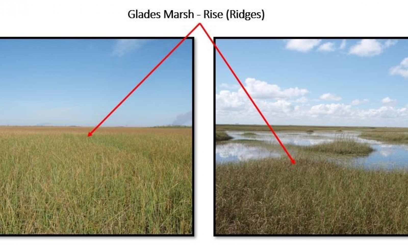 Natural Processes of the sites: The Glades Marsh occurs with near constant flooding of glades marshes, combined with the warm subtropical climate, contributes to a lush growth of sawgrass on slightly higher “ridges” and waterlily (Nymphaea sp.) in the lowest dips\sloughs. The long hydroperiod (3 to 9 months) creates an anaerobic soil environment in which the breakdown of sapric organic material is impeded, and sediments from dead vegetation continually accumulates, forming the characteristic sapric organic material. Although most of the glades marsh is located on accumulated sapric organic soil materials, sometimes several meters thick, the substrate may vary due to soil oxidation, fire, or other factors. Fire is a natural component of this landscape. Dominant herbaceous plants in the Everglades, particularly sawgrass, maidencane, and bulltongue arrowhead, grow vigorously following fire under normal conditions, i.e. when water levels are still near the soil surface and shorter hydroperiods (3 to 6 months). The porous limestone surface underlying the basin allows for some interaction between surface water and ground water within the limestone, leading to a slightly basic surface water environment with high calcium levels. These conditions lower phosphorus bioavailability and tend to perpetuate sawgrass dominance.
