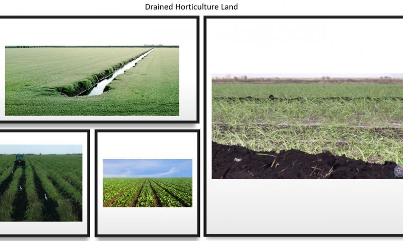 The Drained Pastureland can transition to Drained Horticulture Land state by the removal of all established forages and introduction of desirable commodity crops. Establishment of water drainage control infrastructure is needed if not already present. These practices include; constructing canals to drain the soils up to 20 inches (50 cm) from the surface, construction of water control gates to move the water from one parcel to another, and construction of roads.