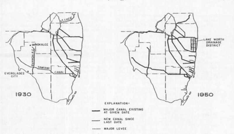 In prairies that are surrounded by pyrogenic uplands, the absence of fire from the marl prairie and may allow for the introduction and establishment of woody species tolerant of extended hydroperiods. Alterations of the seasonal high-water table may allow for the introduction and establishment of woody species as well. Time since fire will be variable in individual prairies as they occur in landscapes occupied by fire-maintained matrix communities and will be dependent on the fire frequency of the surrounding matrix community. Decreases in the long-term hydroperiod will be less of a stressor for shrubby species and may accelerate the process. Decreases in the long-term hydroperiod may be caused directly through processes such as ditching and canal development, or indirectly through drawdown of the water table for surrounding land use conversion.