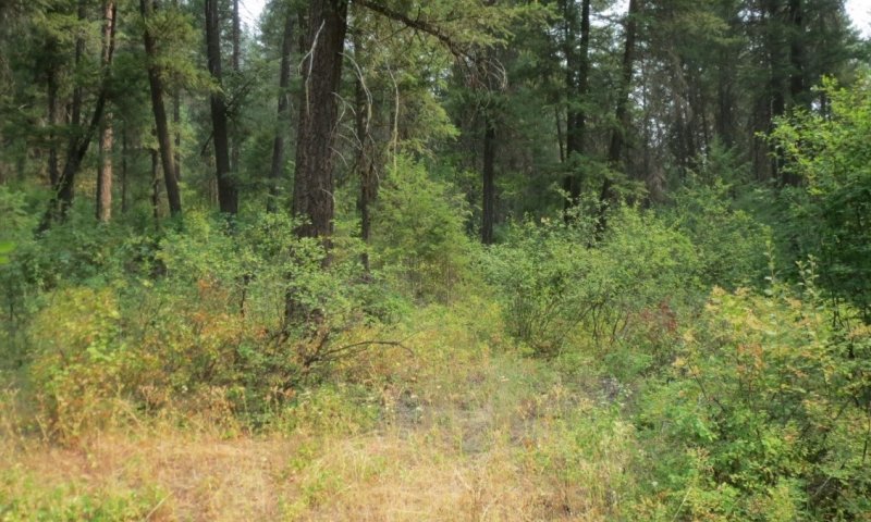 This ESG in distinguished by an overstory of ponderosa pine and Douglas-fir and an understory shrub component of ninebark, oceanspray, and snowberry. It occurs on foothills, mountainsides, and canyon walls. Pre-European frequent low intensity fire created open ponderosa stands with grass/herbaceous understory, mainly pinegrass. With fire suppression and management use stands currently have high density with multiple overstories of ponderosa pine and Douglas-fir. With infrequent fire shrubs will dominate the understory. This ESD fits into the National Vegetation Standard’s Central Rocky Mt. Ponderosa Pine – Douglas-fir Dry shrub alliance and Washington State’s Natural Heritage Program’s Northern Rocky Mt. Dry Mesic Montane Mixed Conifer Forest.