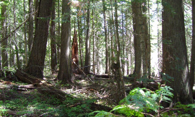 This ecological site is the largest of the western redcedar series. It’s highly diverse in tree species, shrub and forb composition. Forest composition is dependent of fire severity, occurrence, and tree species seed source after fire. Western white pine used to dominate stands after stand replacing fires before the white pine blister rust. Now, western larch, Douglas-fir, lodgepole, and ponderosa pine (dry exposures) have replaced it. Grand fir and western red cedar also get established but sit in understory underneath the other species until release from canopy openings. In early stands after fire Quaking aspen, paper birch, and black cottonwood will be present only to be overtopped in later years. Shrub competition can be severe after fire with many shrub species dominating the site. Red stem ceanothus or snowbrush ceanothus (drier areas) could dominate sites with severe burns. Mixed severity fires create a patchy mosaic of all tree species being present. Reference condition will have fire exclusion or fire intervals of over 150 years which produce an all-aged western red cedar – grand fir forest. Relic western larch, Douglas-fir, and ponderosa pine may be present.